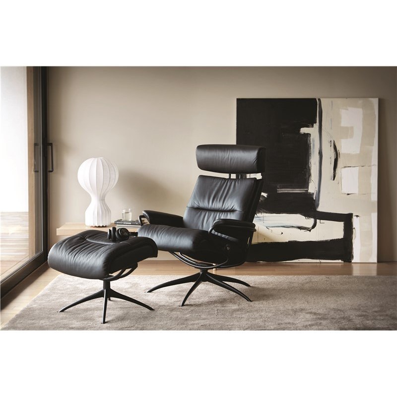 Stressless Tokyo is the latest in elegant recliners from Ekornes. A sharp contour, chrome details and high grade leather makes the Stressless Tokyo a bold, self-assured design statement. This recliner isn't just about looks, of course: it has all the patents and advantages you've come to expect from a Stressless. The rotating Star base gives you even more movability, and the adjustable pillow provides optimal neck support. The Stressless Tokyo comes in two different heights and back lengths, for different uses and tastes.Staingard comprehensive furniture protection schemes offer our customers complete peace of mind by providing the best furniture care products and care plans with 5 years protection against accidental damage, staining and structural defects. Please call the store for more information regarding pricing.
